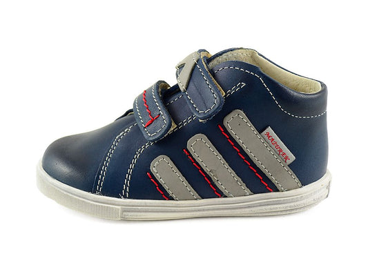 Cute natural leather booties for little kid boys with properties supporting healthy feet development in young children. These shoes will keep young feet comfy, healthy and supported. They are lightweight, easy to put on and take off. Great quality of materials and labor. Made in Europe.