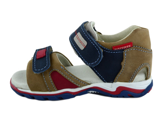 Cute natural leather sandals for little kid boys with properties supporting healthy feet development in young children. These shoes will keep young feet comfy, healthy and supported. They are lightweight, easy to put on and take off. Great quality of materials and labor. Made in Europe.