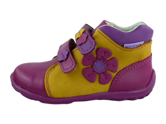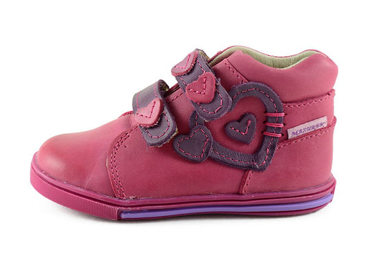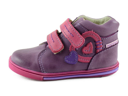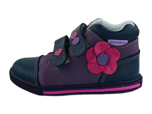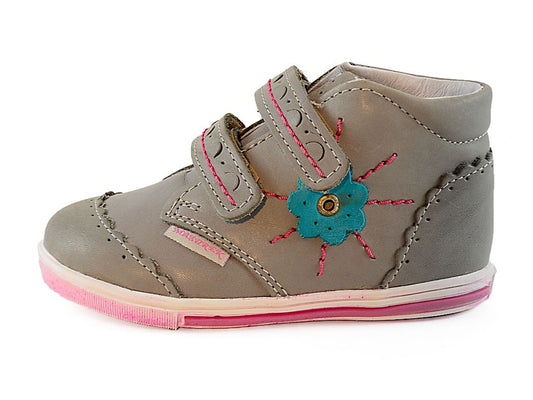 Cute natural leather booties for little kid girls with properties supporting healthy feet development in young children. These shoes will keep young feet comfy, healthy and supported. They are lightweight, easy to put on and take off. Great quality of materials and labor. Made in Europe.