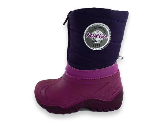 Waterproof snow boots lined with sheep's wool for toddlers and little kids with properties supporting healthy feet development in young children. Will keep young feet healthy, comfy and warm. Shoes are lightweight, easy to put on and take off. Great quality of materials and labor. Made in Europe.