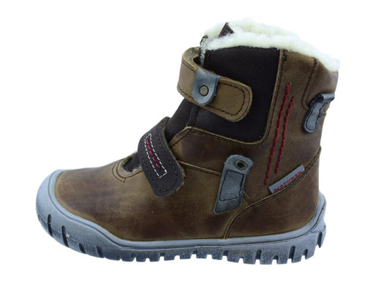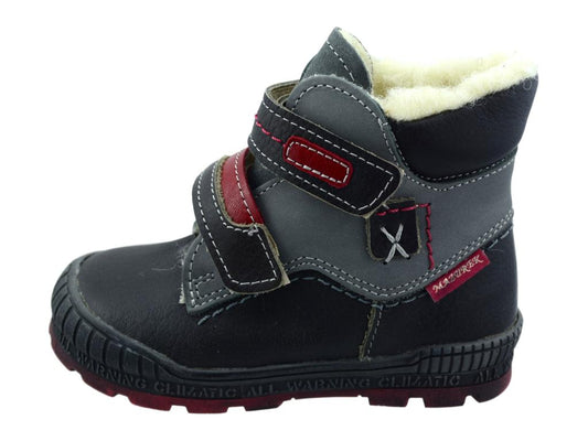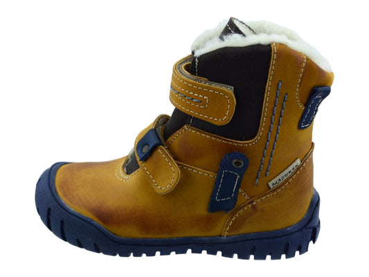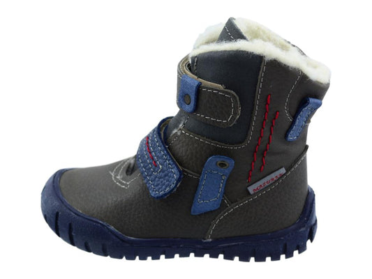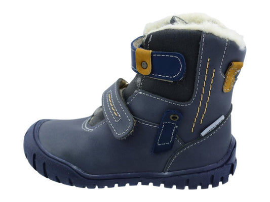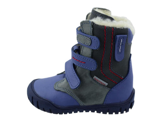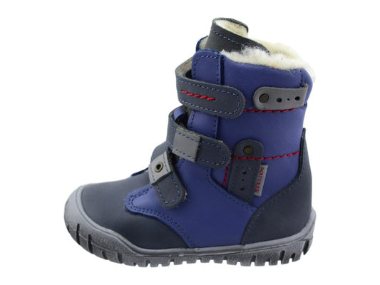 Winter shoes lined with sheep's wool for boys with properties supporting healthy feet development in young children. Will keep young feet healthy, comfy and warm. Shoes are lightweight, easy to put on and take off. Great quality of materials and labor. Made in Europe.