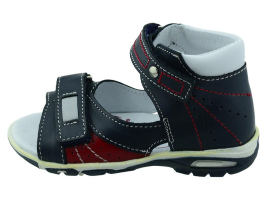 Cute natural leather sandals for toddler boys with properties supporting healthy feet development in young children. These shoes will keep young feet comfy, healthy and supported. They are lightweight, easy to put on and take off. Great quality of materials and labor. Made in Europe.