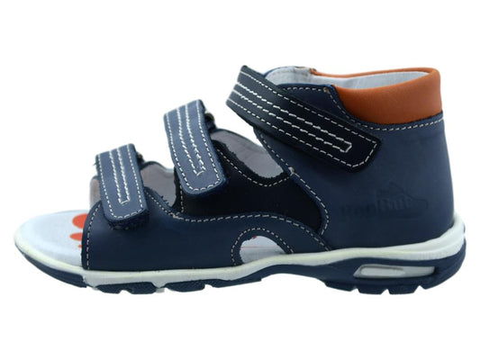 Cute natural leather sandals for toddler boys with properties supporting healthy feet development in young children. These shoes will keep young feet comfy, healthy and supported. They are lightweight, easy to put on and take off. Great quality of materials and labor. Made in Europe.