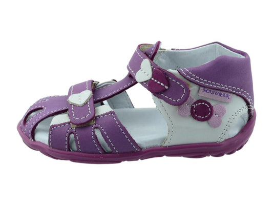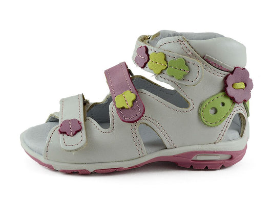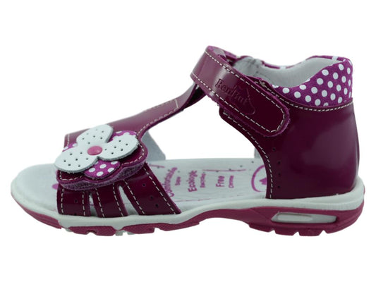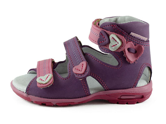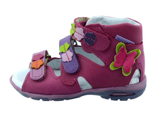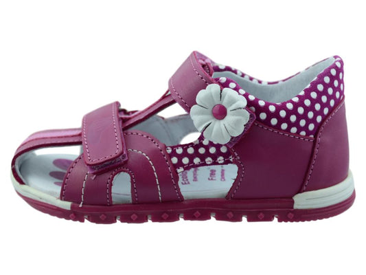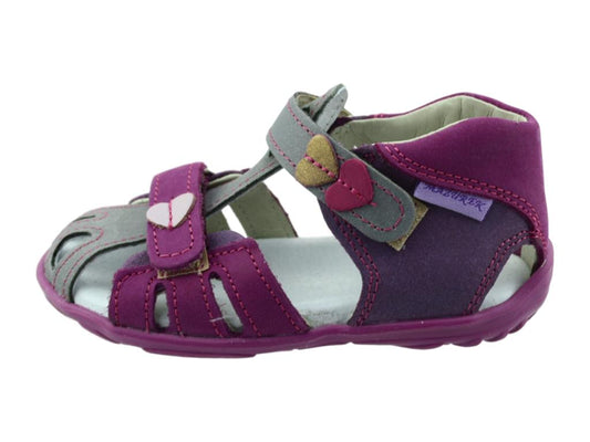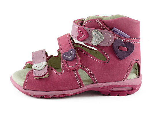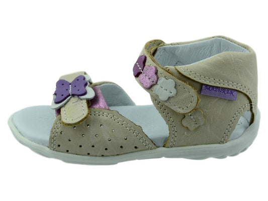 Cute natural leather sandals for toddler girls with properties supporting healthy feet development in young children. These shoes will keep young feet comfy, healthy and supported. They are lightweight, easy to put on and take off. Great quality of materials and labor. Made in Europe.
